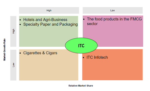 - Boston Consulting Group(BCG) Matrix: BCG Matrix is intended to assist with a long-term strategy to assist a business in considering business development opportunities by surveying its arrangement of products to choose where to contribute, suspend, or develop products. There are four quadrants. Taking the example of ITC:
