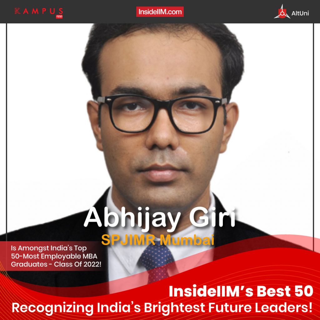 In our list of India's Best 50 - the 50 Most Employable Students from the Class of 2020-22, we feature MBA students who have walked that extra mile and done that little more to stand out! One of those featured in today's story, Abhijay Giri, has shown an incredible amount of passion to achieve his true potential. Read on and find out his story!