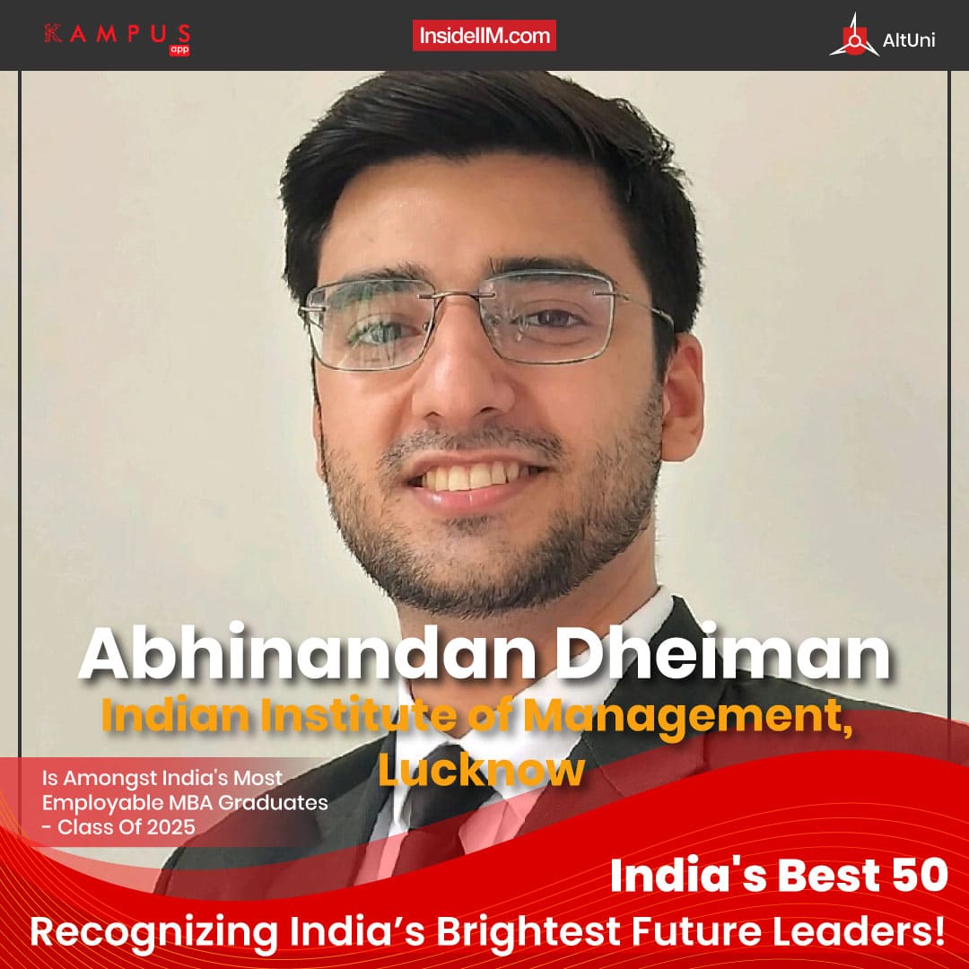 Abhinandan Dheiman’s journey to IIM Lucknow reflects his passion for business management and his commitment to personal and professional growth. With a BA in Economics from Cluster University of Jammu, he developed a solid foundation in understanding markets, organizational strategies, and economic principles. It was during his undergraduate years that his fascination with the mechanics of business began to take shape, as he immersed himself in subjects like microeconomics and business policies.