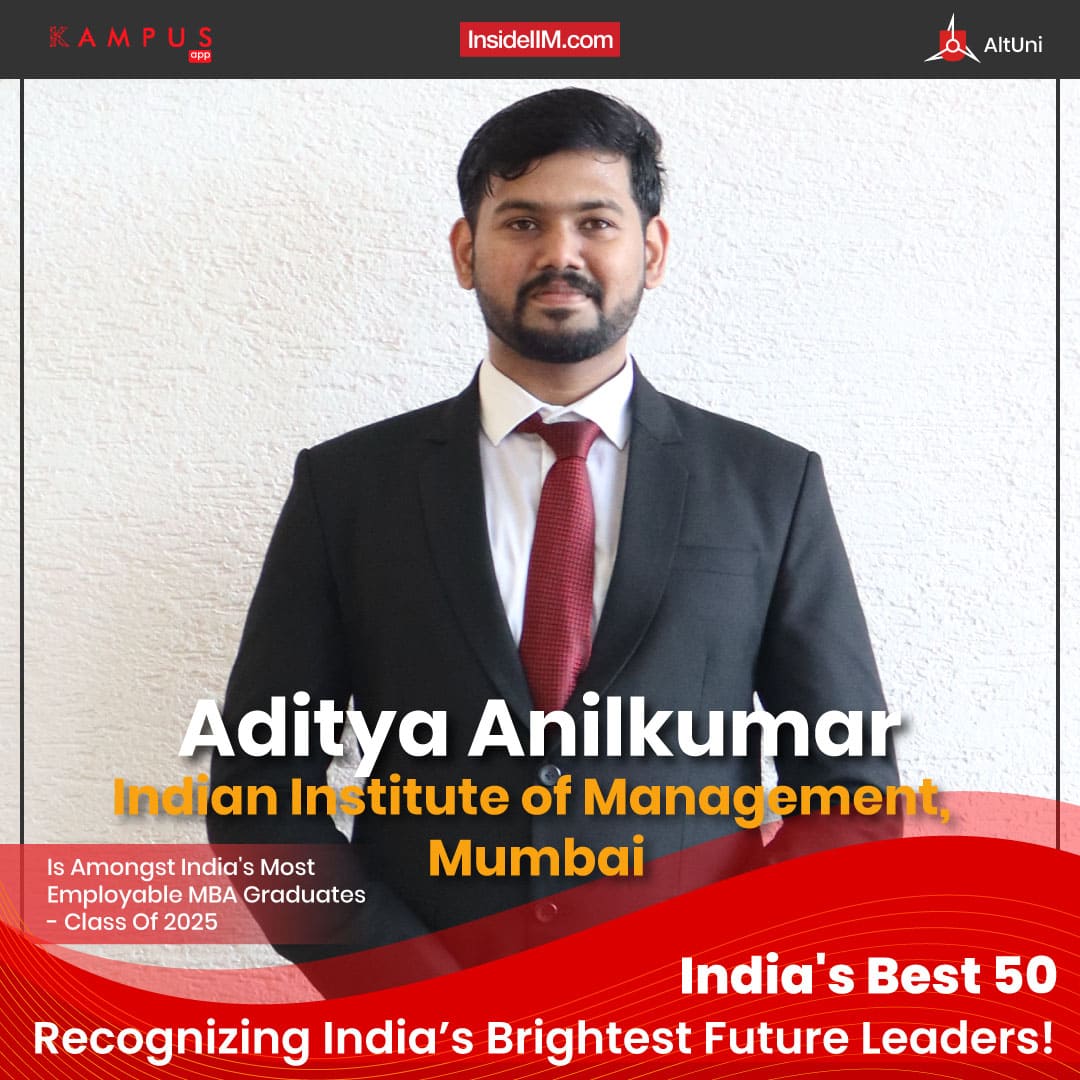 Aditya Anil Kumar from the Indian Institute of Management – Mumbai is recognized as one of the 50 most employable MBA graduates from the Class of 2025. His unique blend of engineering expertise and strategic business acumen has prepared him exceptionally well for a successful MBA journey. His story reflects a profound commitment to excellence and innovation.