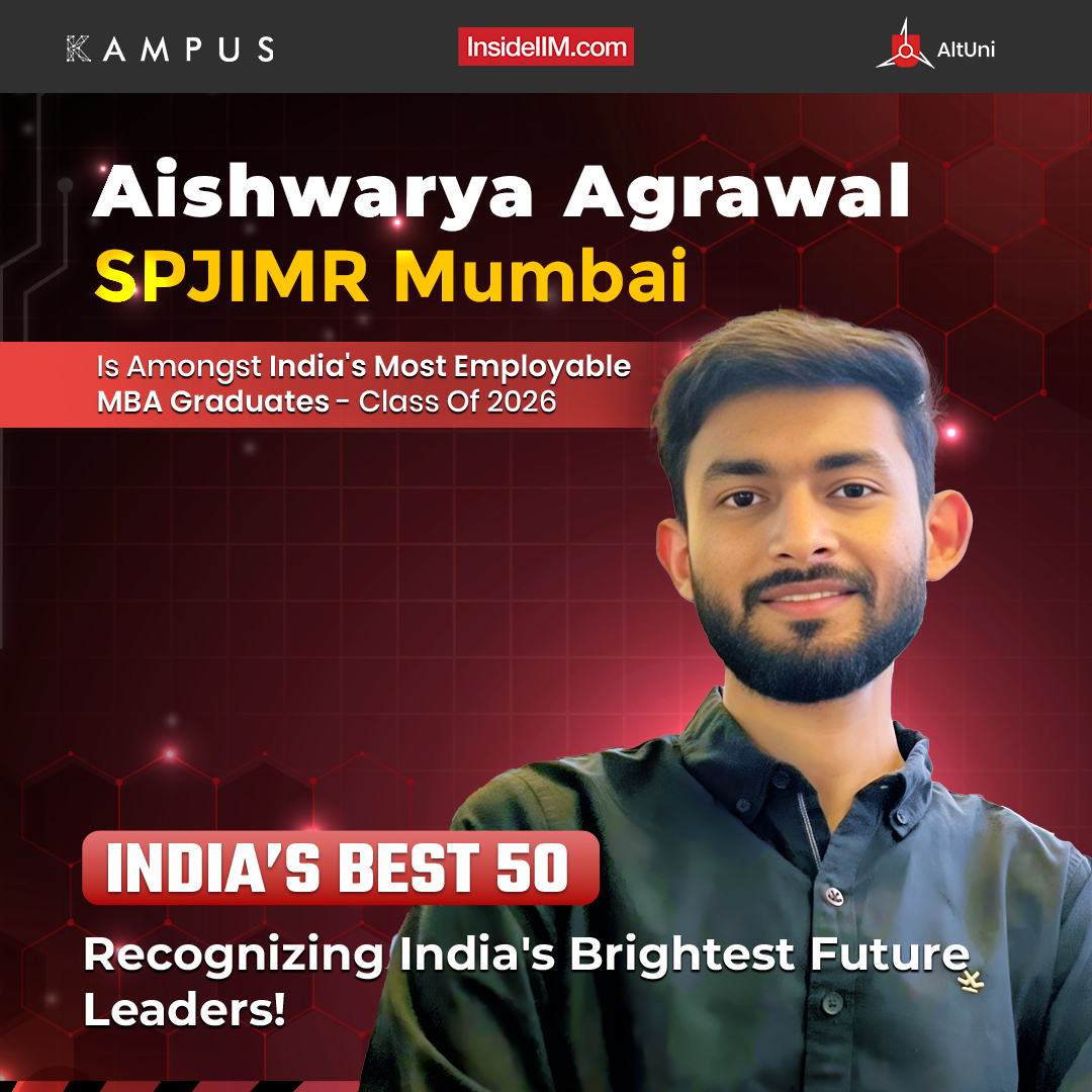 Aishwarya Agrawal from SPJIMR has earned his place among the 50 Most Employable MBA Graduates from the Class of 2026. His journey reflects a blend of entrepreneurial initiative, emotional depth, and thoughtful leadership. Scroll down to explore how Aishwarya has shaped his path with resilience, curiosity, and a commitment to helping others grow alongside him.