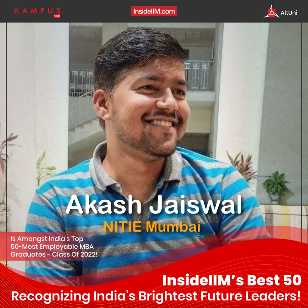 In our list of India's Best 50 - the 50 Most Employable Students from the Class of 2020-22, we feature MBA students who have walked that extra mile and done that little more to stand out! One of those featured in today's story, Akash Jaiswal, has shown an incredible amount of passion to achieve his true potential. Read on and find out his story!