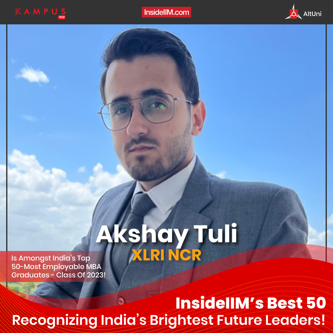 In our list of India's Best 50 - the 50 Most Employable Students from the Class of 2021-23, we feature MBA students who have walked that extra mile and done that little more to stand out! One of those featured in today's story, Akshay Tuli, has shown an incredible amount of passion to achieve his true potential. Read on and find out his story!