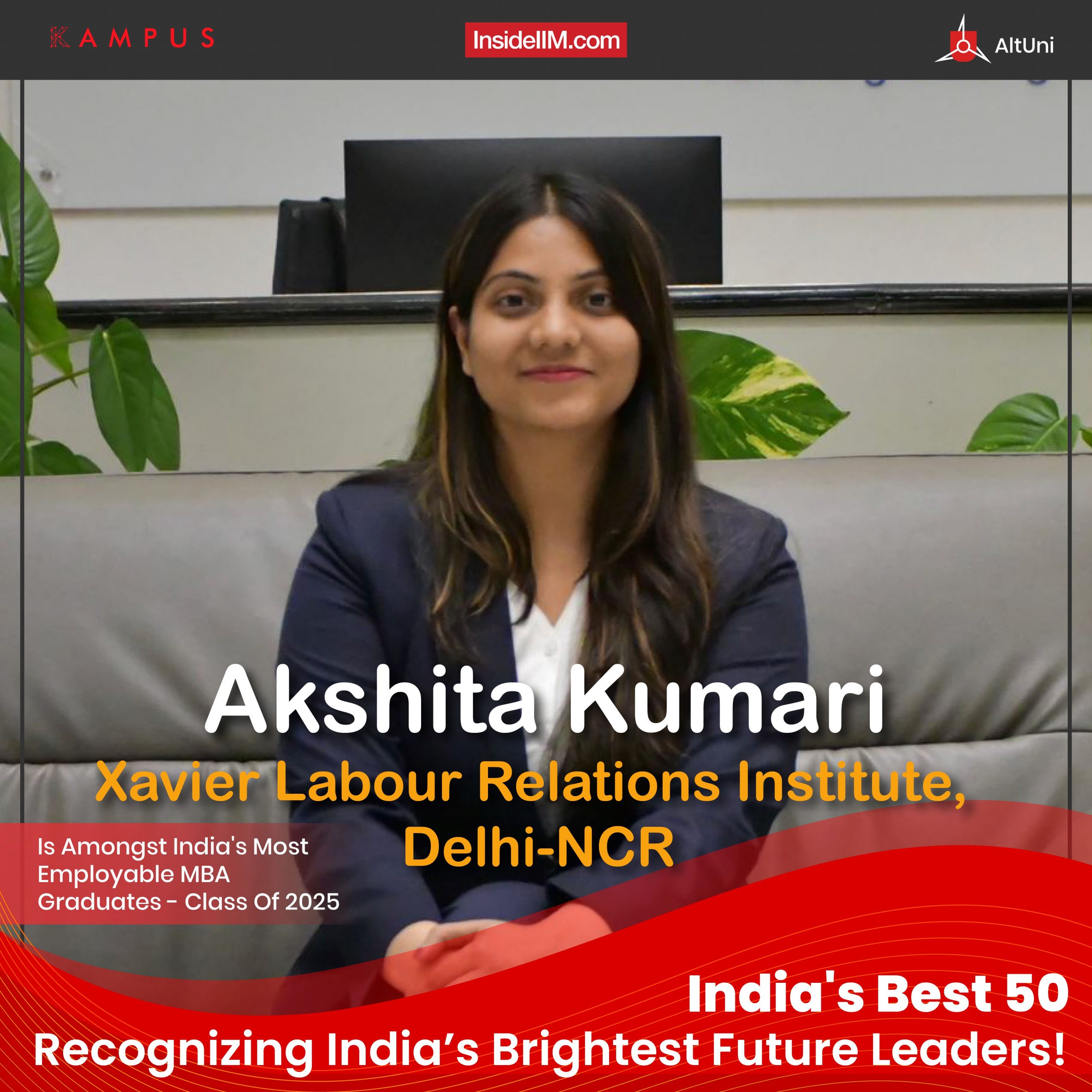 Akshita Kumari, a student at Xavier Labour Relations Institute, Delhi-NCR, is recognized as one of the 50 most employable MBA graduates of the Class of 2025. Her journey showcases a blend of resilience, innovation, and leadership that sets her apart. Scroll down to read Akshita’s inspiring story.