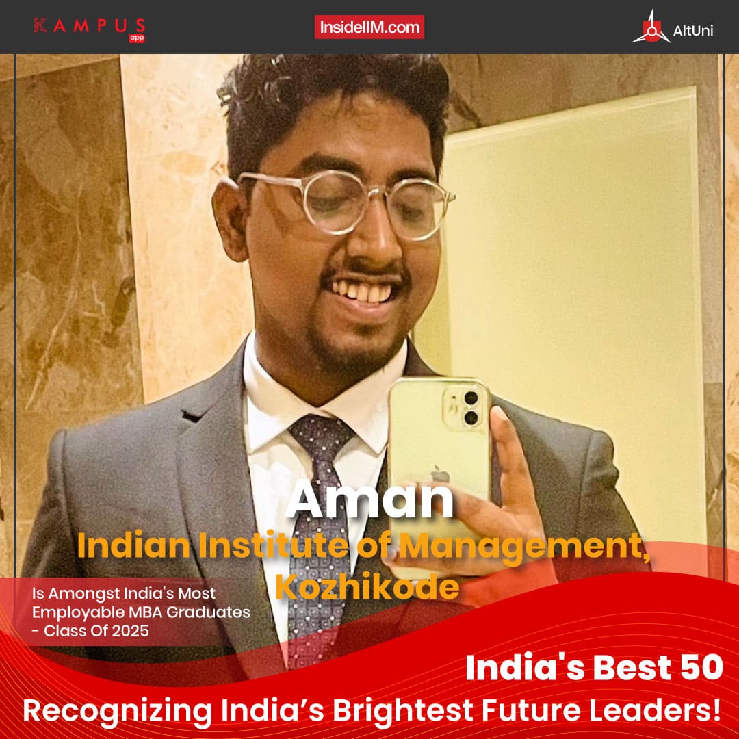 Aman, a postgraduate student at the Indian Institute of Management, Kozhikode, stands out as a well-rounded individual who combines academic brilliance, creative pursuits, and leadership excellence. His journey from pursuing a Bachelor’s degree in Management Studies (BMS) at Deen Dayal Upadhyaya College (DDUC), Delhi University, to excelling at IIM Kozhikode demonstrates his commitment to learning, adaptability, and relentless drive for success.