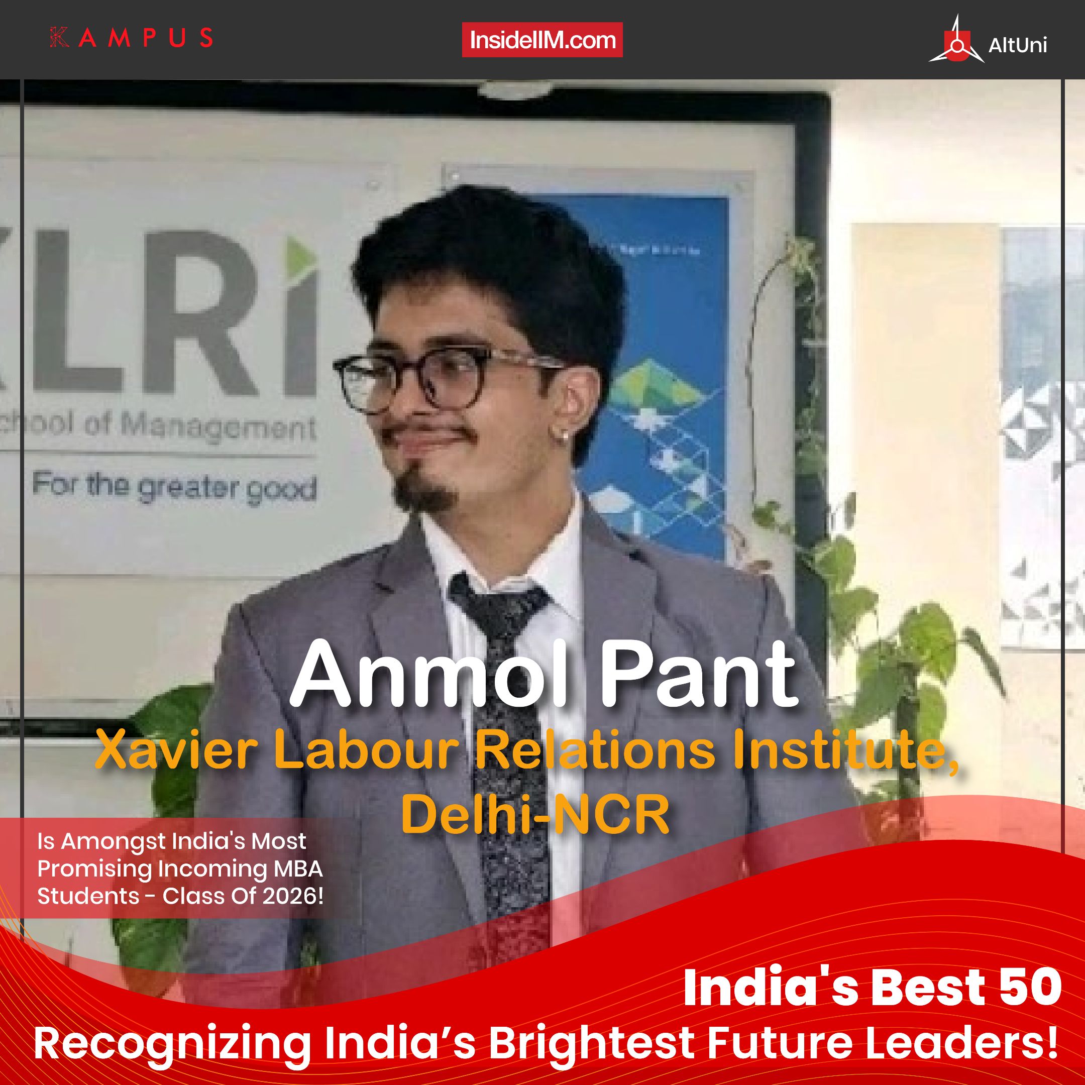 Selected to the Best 50 of India's Most Promising Incoming MBA Students 2024, Anmol Pant blends a high-trust engineering backbone with people-first execution. A top performer at Société Générale as SDE, he shipped on time across multi-stakeholder projects, earning the Annual Innovation Award for an alert-management platform and a Commitment Award for concurrently delivering three initiatives. Earlier, Anmol ranked at the top of class for a decade at Mount Carmel School, won VIT’s Annual Achiever’s Award, secured a super dream placement, and were named among The Economic Times’ Brightest Engineering Minds—while giving back through Sakshar Bharat teaching, CodeChef-VIT leadership (national hackathons, mentorship), and large-scale DEI/event ops (fresher’s & annual day; crowds up to 15,000). At Xavier Labour Relations Institute, Delhi-NCR, he brings this pattern to larger mandates.