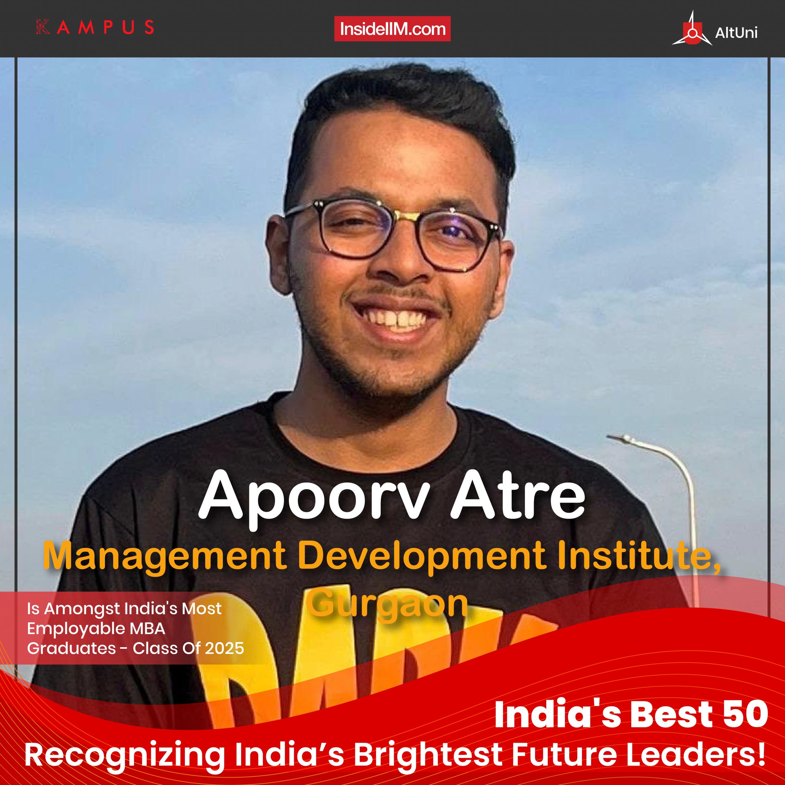 Apoorv Atre from Management Development Institute (MDI), Gurgaon, is celebrated as one of the 50 Most Employable MBA Graduates from the Class of 2025. Scroll down to explore Apoorv’s inspiring journey, where resilience, adaptability, and a unique blend of technical expertise and leadership skills have shaped his path to success.