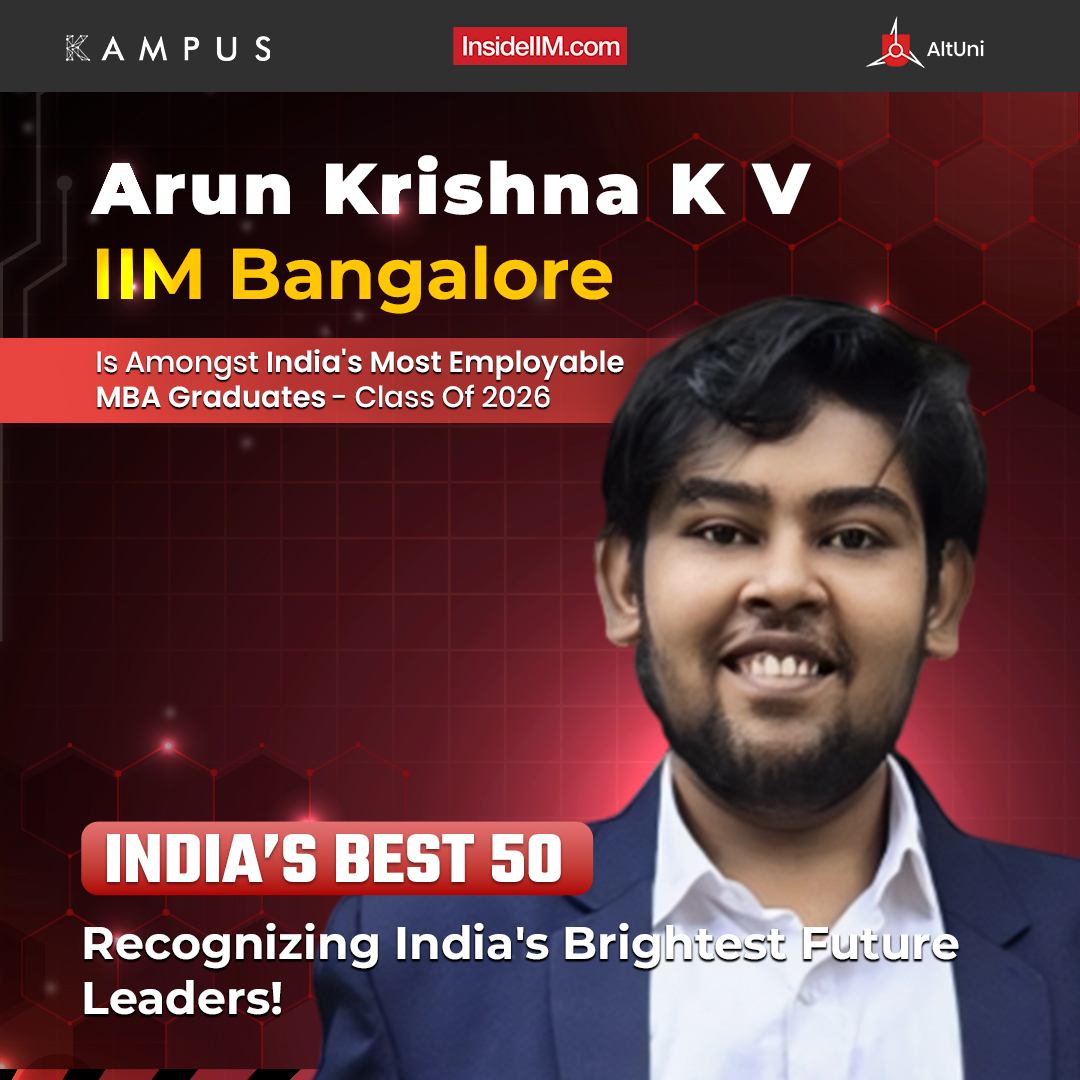 Arun Krishna K V from the Indian Institute of Management Bangalore has earned his place among the 50 Most Employable MBA Graduates from the Class of 2026. His story is defined by a rare duality: the deep technical rigor of a top-tier engineer combined with the inclusive, customer-centric thinking of an elite product leader. Scroll down to discover how Arun has transformed opportunities into milestones and challenges into stepping stones.