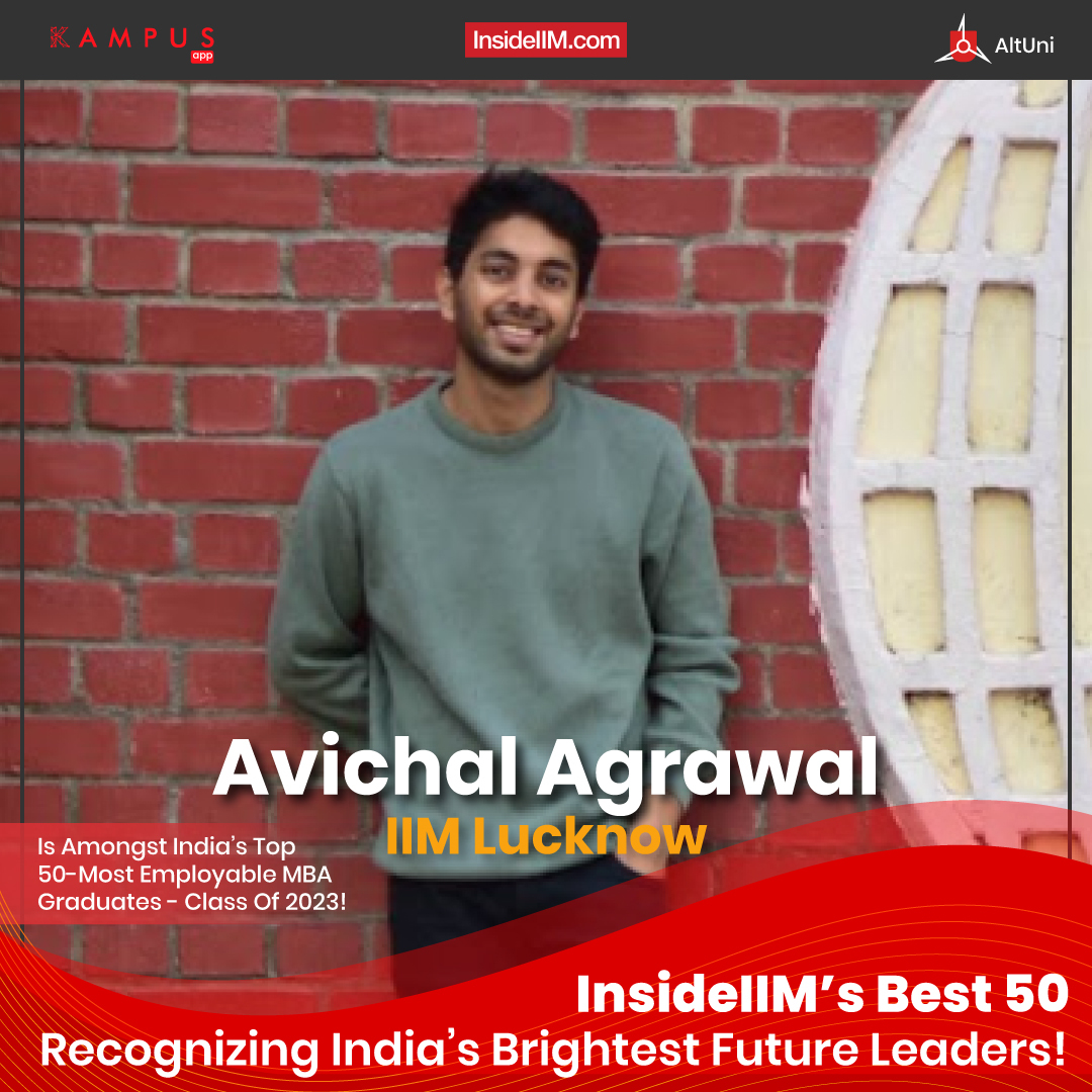 The following are Avichal Agrawal’s set of responses to a questionnaire floated amongst MBA graduates to determine the top 50 Most Employable MBA Graduates of the Class of 2023. Amongst the massive number of entries and responses being evaluated, Avichal's story and profile stood out. Here's his story in his own words.