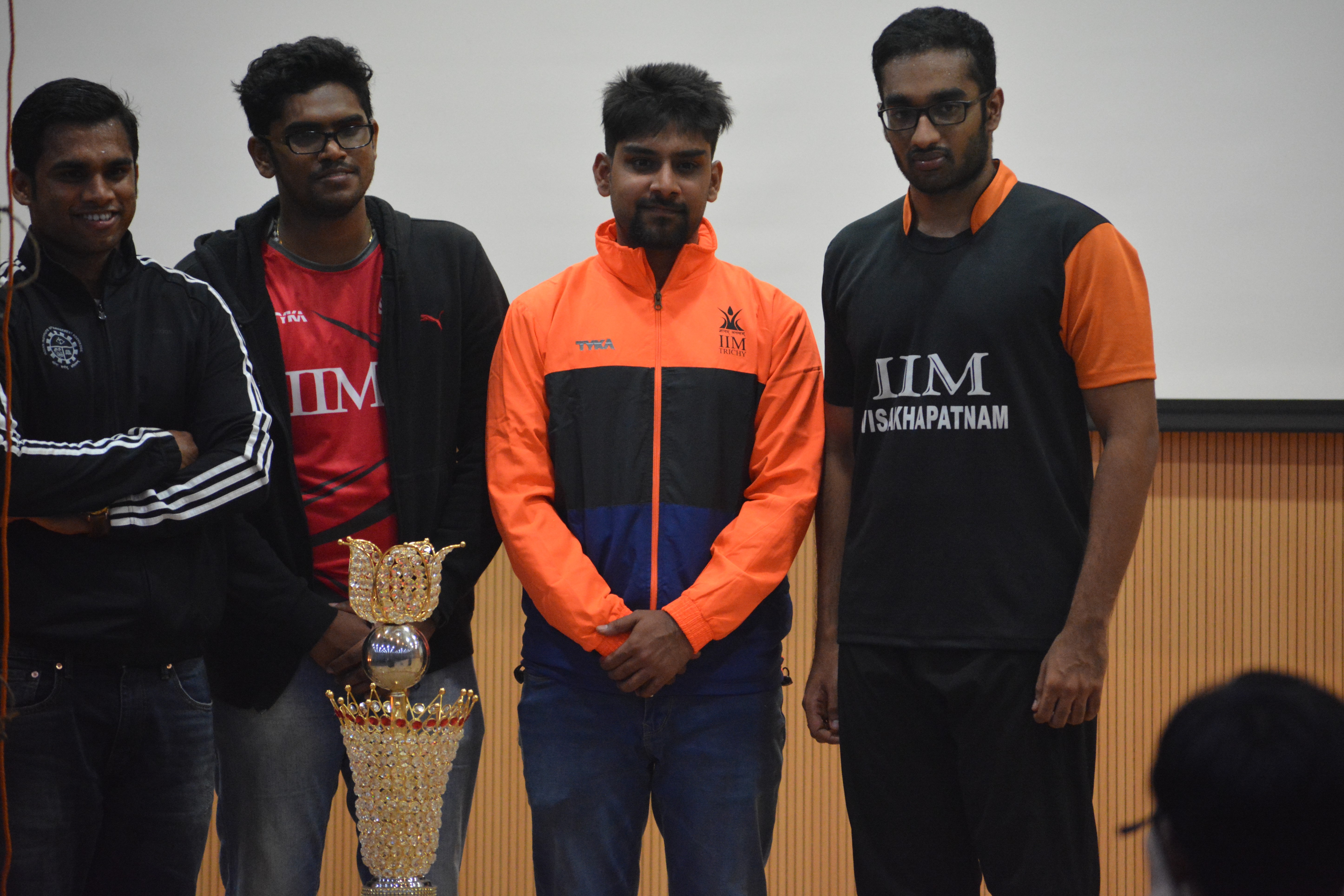 The last event of the day was the men’s Basketball game between IIM Bangalore and IIM Trichy. IIM B, having beaten IIM T in the same encounter last year was high on confidence and so was our team who had practised hard for this matchup. The game played to its potential and was poised for a nail-biting finish with both teams exchanging leads throughout the match. Over the last quarter, IIM T pulled away with the lead and managed to close out the match, leading to huge celebrations on the court.