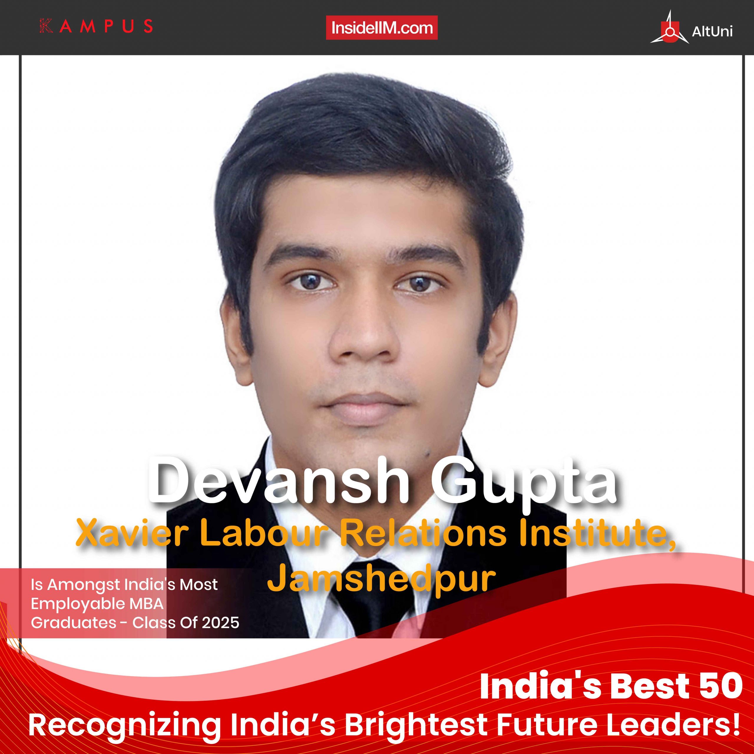 Devansh Gupta from Xavier Labour Relations Institute, Jamshedpur, has been recognized as one of the 50 most employable MBA graduates from the class of 2025. His journey showcases a unique blend of academic excellence, professional achievements, and leadership experiences. Scroll down to uncover Devansh’s inspiring story.