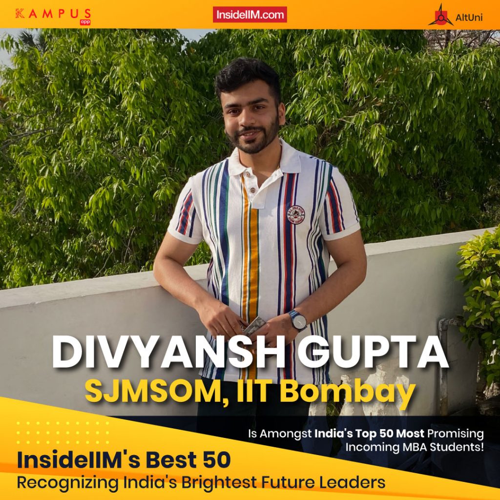 Divyansh Gupta from the Shailesh J. Mehta School of Management, IIT Bombay, Mumbai is one of India's Most Promising Incoming MBA Students 2022!