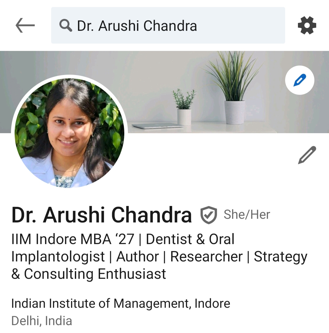 Hi, I’m Dr. Arushi Chandra — a dentist by training, and now (still getting used to saying this) an incoming MBA student at IIM Indore, Class of 2027.
