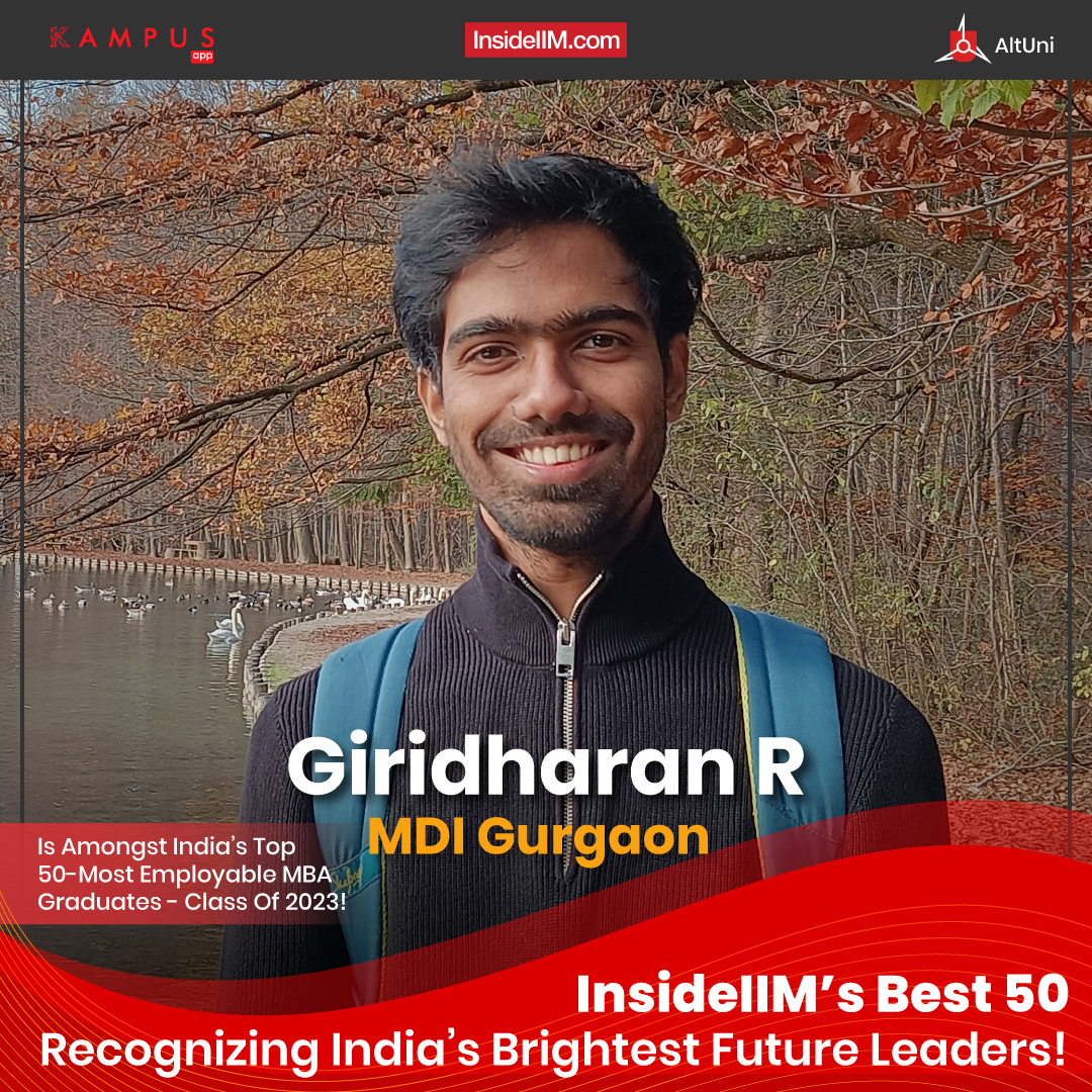The following are Giridharan R’s set of responses to a questionnaire floated amongst MBA graduates to determine the top 50 Most Employable MBA Graduates of the Class of 2023. Amongst the massive number of entries and responses being evaluated, Giridharan's story and profile stood out. Here's his story in his own words.