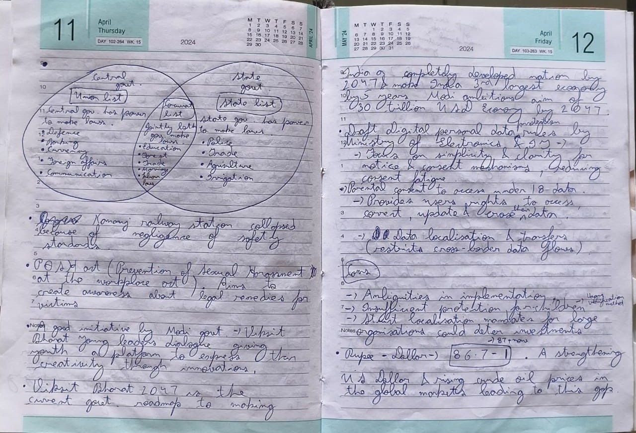 - I made notes of facts, figures, and insights that I could use to build points for GDs.