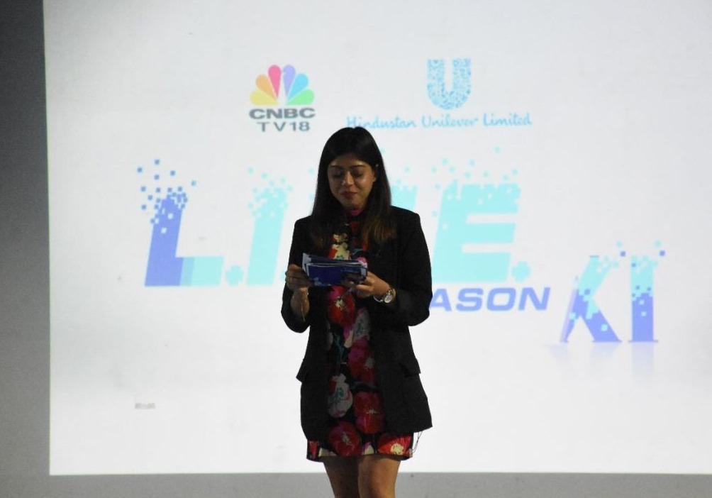 The stage was set for the top 6 campus finalists to present their cases. The panellists included Ms. Shibani Gharat, Principal Correspondent, CNBC Awaaz , Mr. Venkata Krishna, Consumer Cluster Head, HUL and our very own faculty, Dr. K. Rajagopal, Associate Professor, Marketing. The solutions presented by the finalists lived up to the theme of the competition. The focus throughout was on the mass customisation of ‘Data-driven Marketing’. HUL was looking for how one uses data signals that are generated all around to understand the consumer better and the way that it is brought back into play in traditional marketing. The finalists were given 7 minutes to present their solutions post which they had to answer questions that gave them an opportunity to deep dive into their research and analysis. The host for the event Ms. Radhika Sinha from CNBC – TV18, livened up the venue by interacting with the participants and kept the audiences engaged with an impromptu quiz.