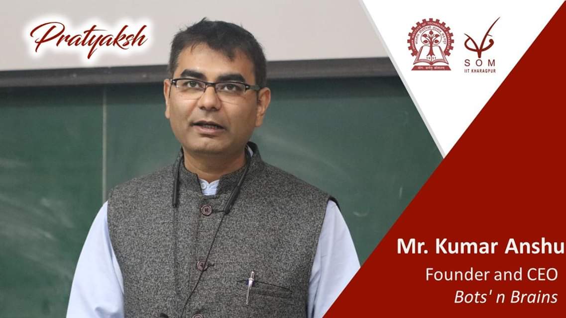 The Vinod Gupta School of Management, IIT Kharagpur got the prestigious opportunity to host Mr Kumar Anshu, Founder & Chief Executive Officer – Bots’ n Brains for an engrossing guest lecture as a part of our flagship guest lecture series “Pratyaksh”. Mr Kumar is an Entrepreneur; IP Evangelist, and a Spokesperson for various platforms. An alumnus of IIT Bombay and IIM Lucknow along with work experience of over a decade in fields like market research, patent research, analytics and operations, Mr Kumar has well established himself as a stellar performer and adroitly balances it with his passion for designing and delivering fun filled training by running an education initiative.