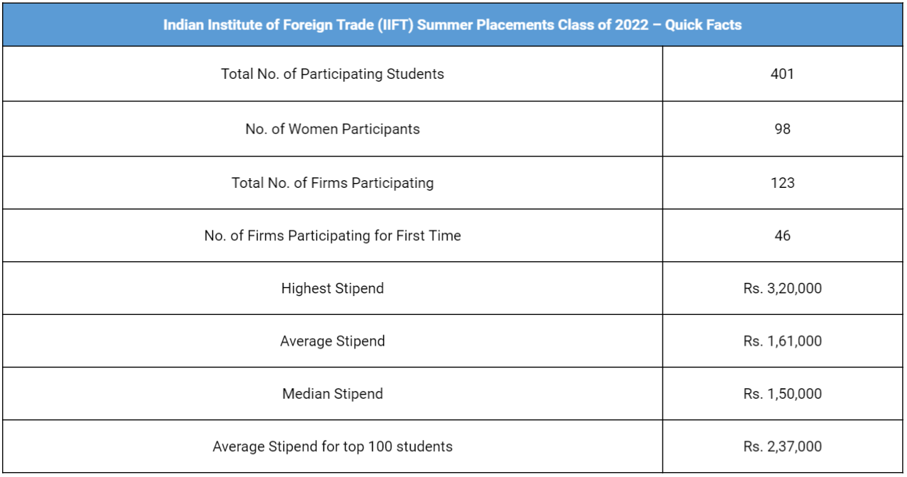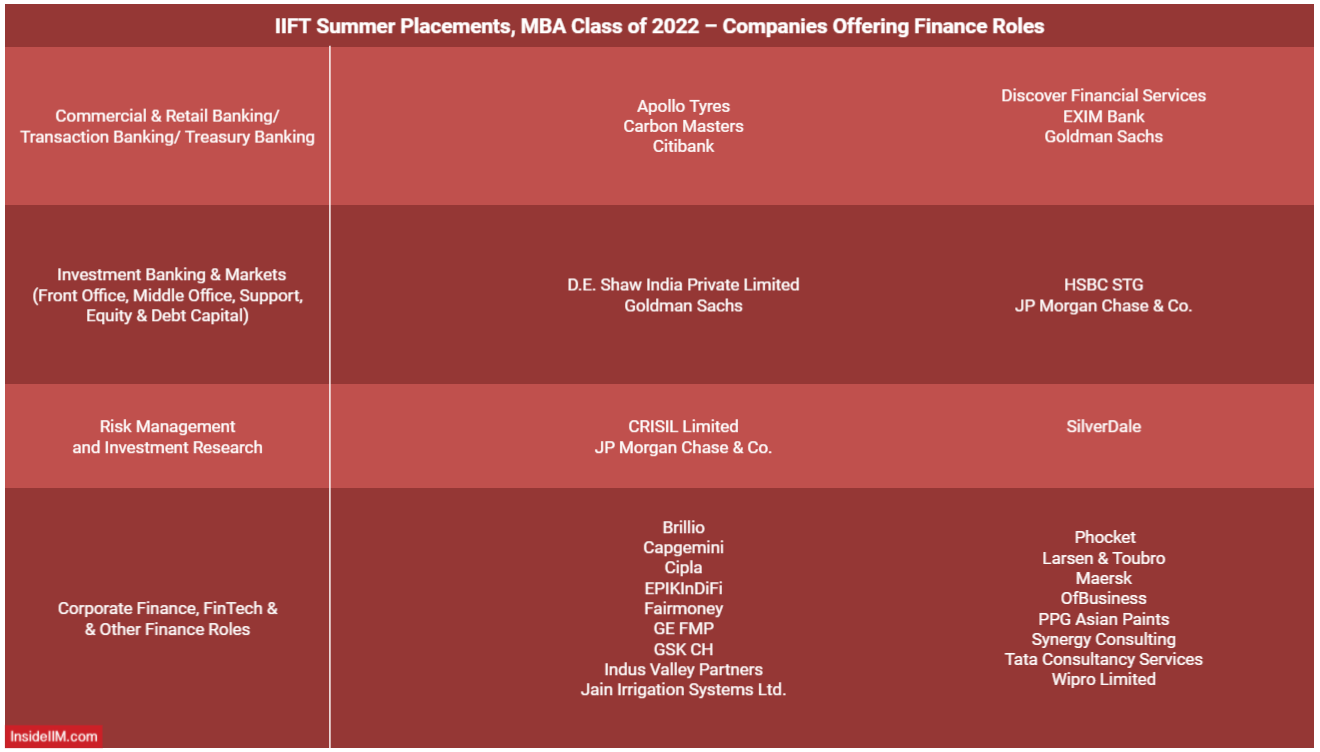 Top Finance Recruiters At IIFT | Summer Placements, MBA (IB) Class of 2022