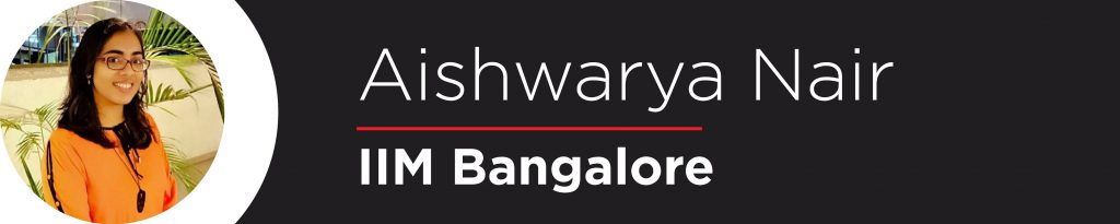 Aishwarya Nair is a first-year student of the PGP MBA programme at IIM Bangalore. She graduated as a Computer Science engineer from NIT Tiruchirappalli in 2019 and worked for a year as a Software Engineer at Visa.