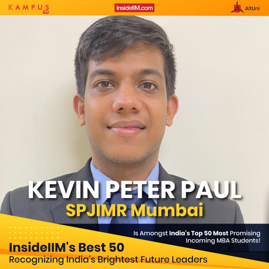 Kevin Peter Paul from the SP Jain Institute of Management & Research, Mumbai is one of India's Most Promising Incoming MBA Students 2022!
