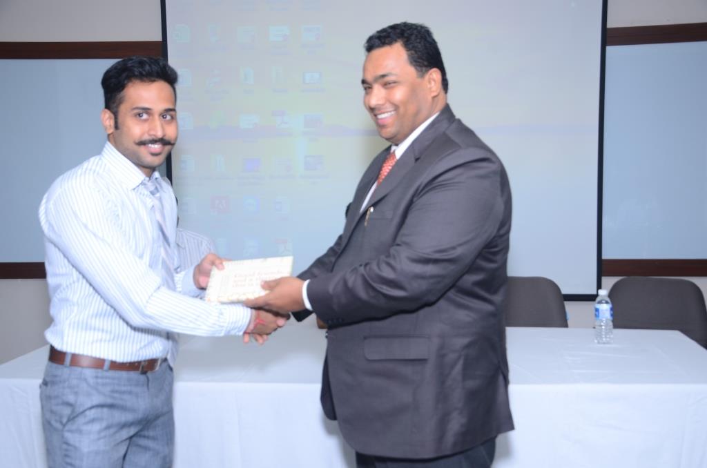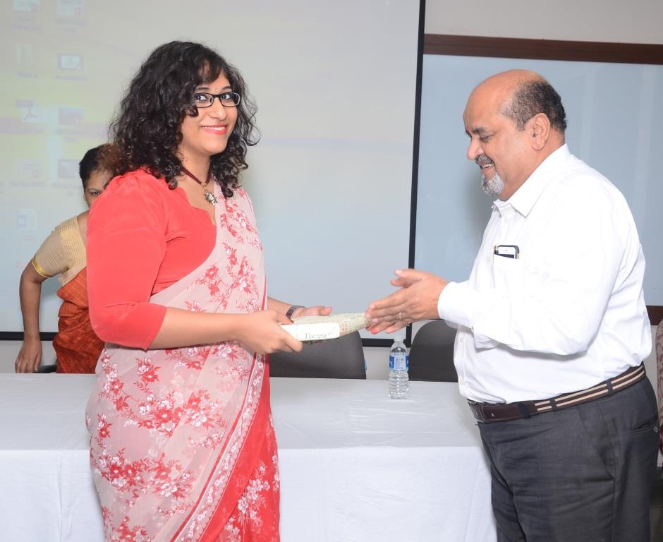 Shruti also had the privilege of leading the gathering for the auspicious Invocation that started the proceedings for the day on a thoughtful note. The traditional lighting of the lamp by the dignitaries present in the gathering followed. There were big names from the industry and academia present for the occasion. The Chief Guest, Mr. Medge was then introduced by Ms. Gayathri Sunil Kumar, who talked about the dabbawallas in Mumbai, described as the Phenomenon by New York Times. Mr. Medge heads six sigma organization and it was interesting to note the work he has done over the years.