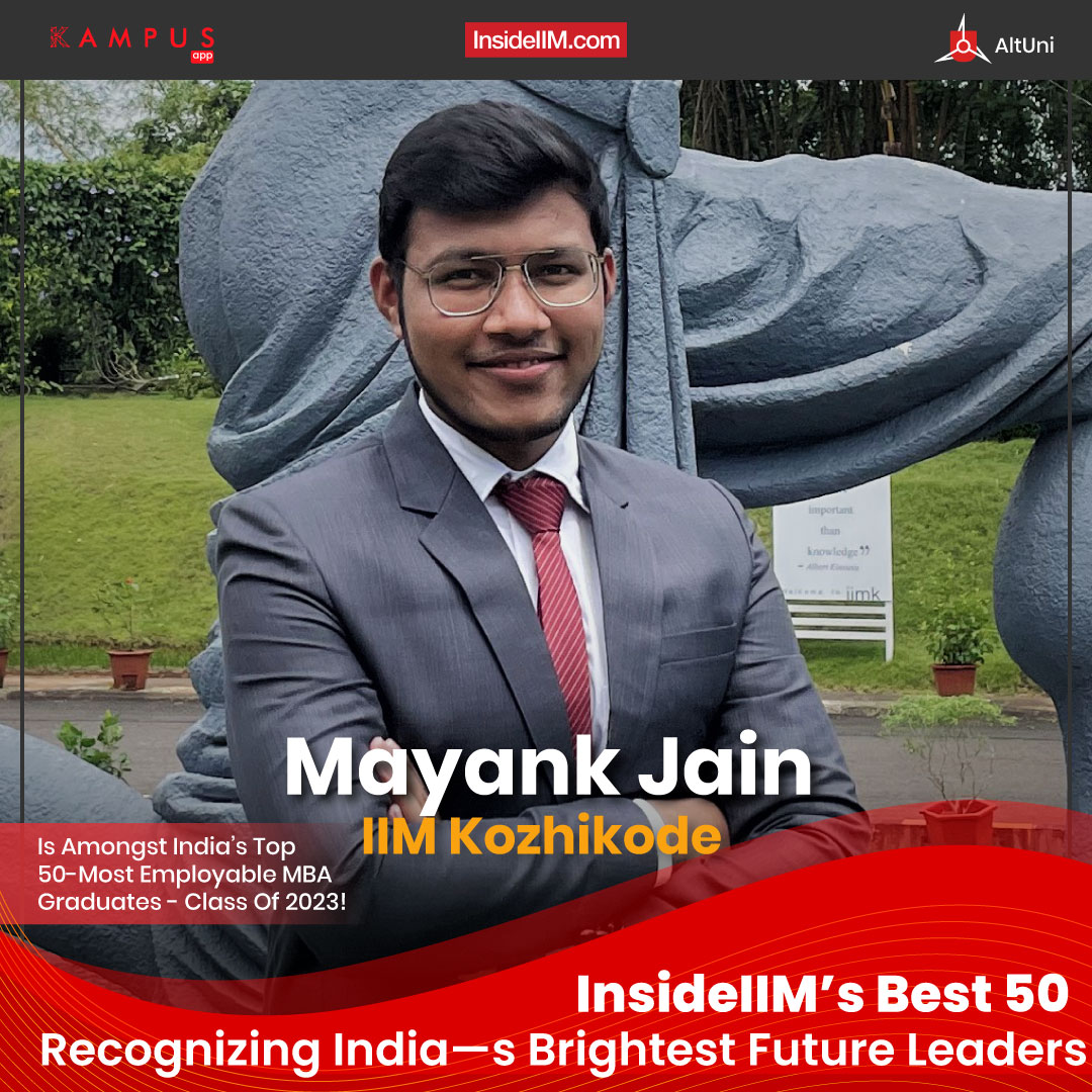 In our list of India's Best 50 - the 50 Most Employable Students from the Class of 2021-23, we feature MBA students who have walked that extra mile and done that little more to stand out! One of those featured in today's story, Mayank Jain, has shown an incredible amount of passion to achieve his true potential. Read on and find out how his story!