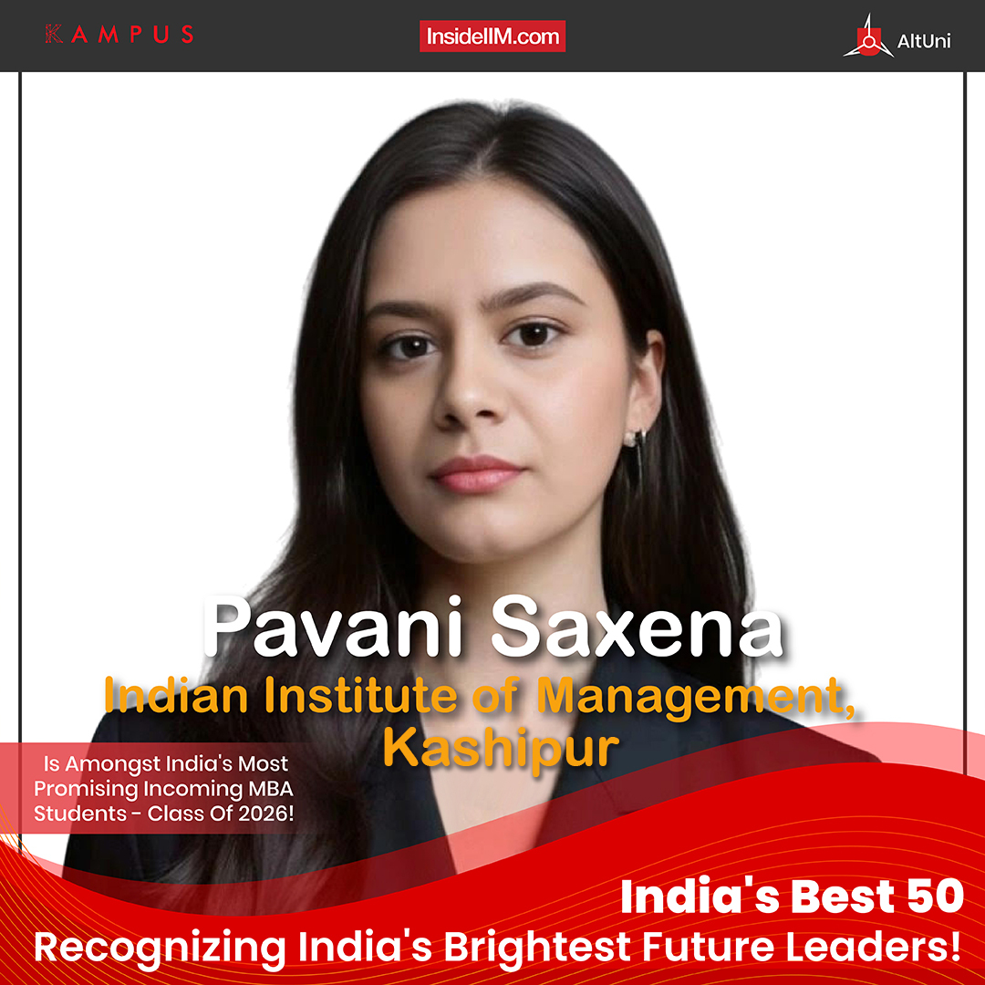 Selected to the Best 50 of India's Most Promising Incoming MBA Students 2024, Pavani Saxena blends front-line People Advisory consulting with values-led execution. From leading assessment and development centre operations at EY to building firm-wide SOPs and driving 300+ paid registrations for her college fest, she shows the same rhythm of clarify, codify, align, and deliver. Choosing Gurugram over Mumbai to care for her father underlines a core ethic of care. At IIM Kashipur, she plans to sharpen analytics and organisation design to scale impact.