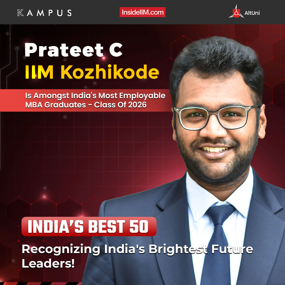 Prateet from the Indian Institute of Management Kozhikode has earned his place among the 50 Most Employable MBA Graduates from the Class of 2026. His journey is defined by precision, perseverance, and a deep-rooted passion for finance and strategy. Scroll down to discover how Prateet has built his career through consistency, ownership, and a commitment to excellence — balancing technical depth with the human side of leadership.