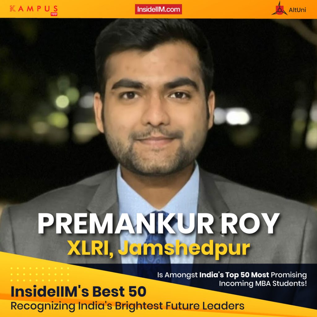 Premankur Roy from Xavier Labour Relations Institute, Jamshedpur is one of India's Most Promising Incoming MBA Students 2022!