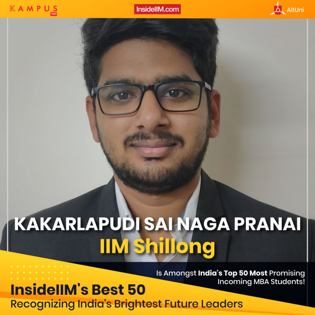 Sai Naga Pranai Kakarlapudi from IIM Shillong is one of India's Most Promising Incoming MBA Students 2021!