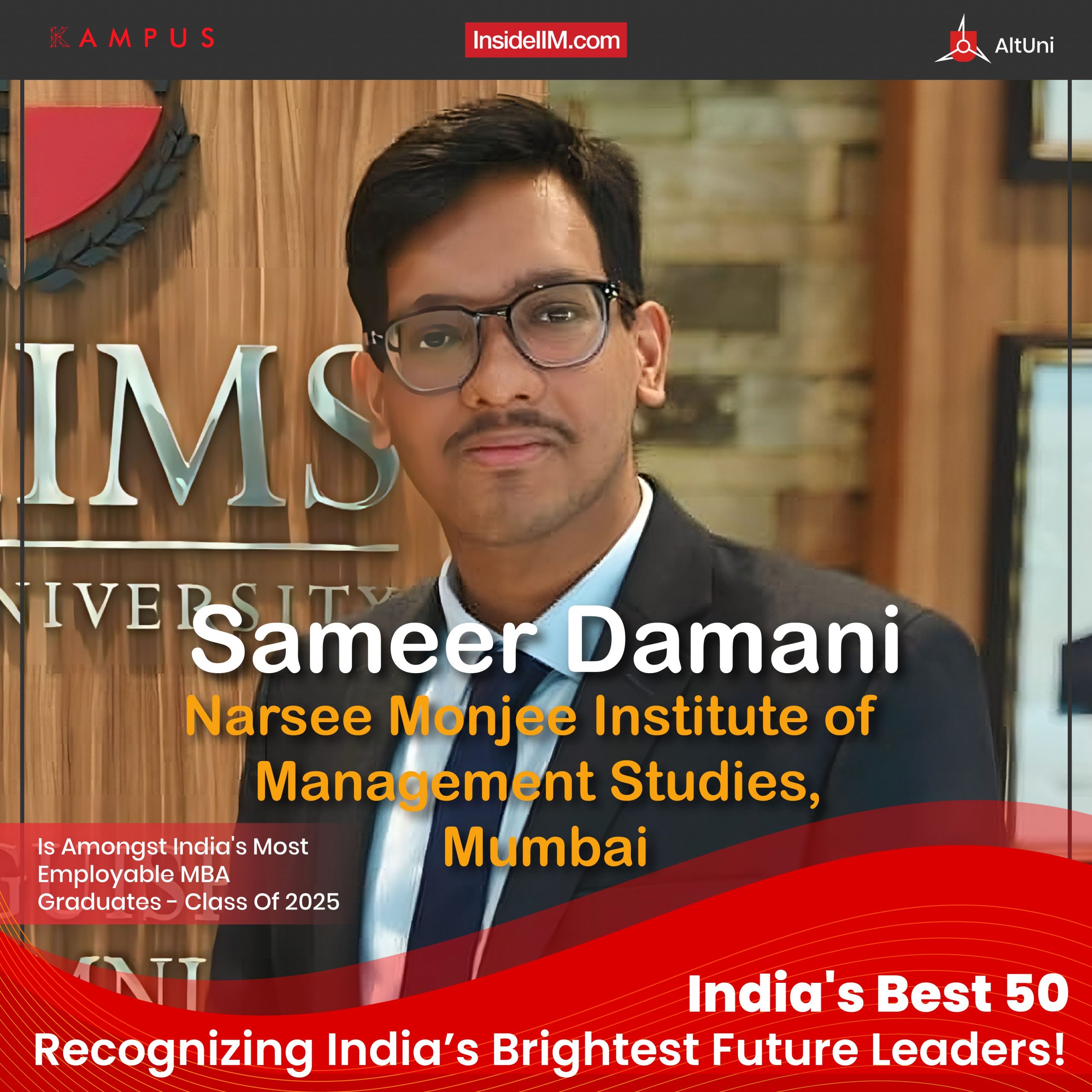 Sameer Damani from Narsee Monjee Institute of Management Studies, Mumbai, is one of the 50 Most Employable MBA Graduates from the Class of 2025. His journey from launching his own business to achieving national recognition exemplifies resilience, entrepreneurial acumen, and a relentless pursuit of excellence.