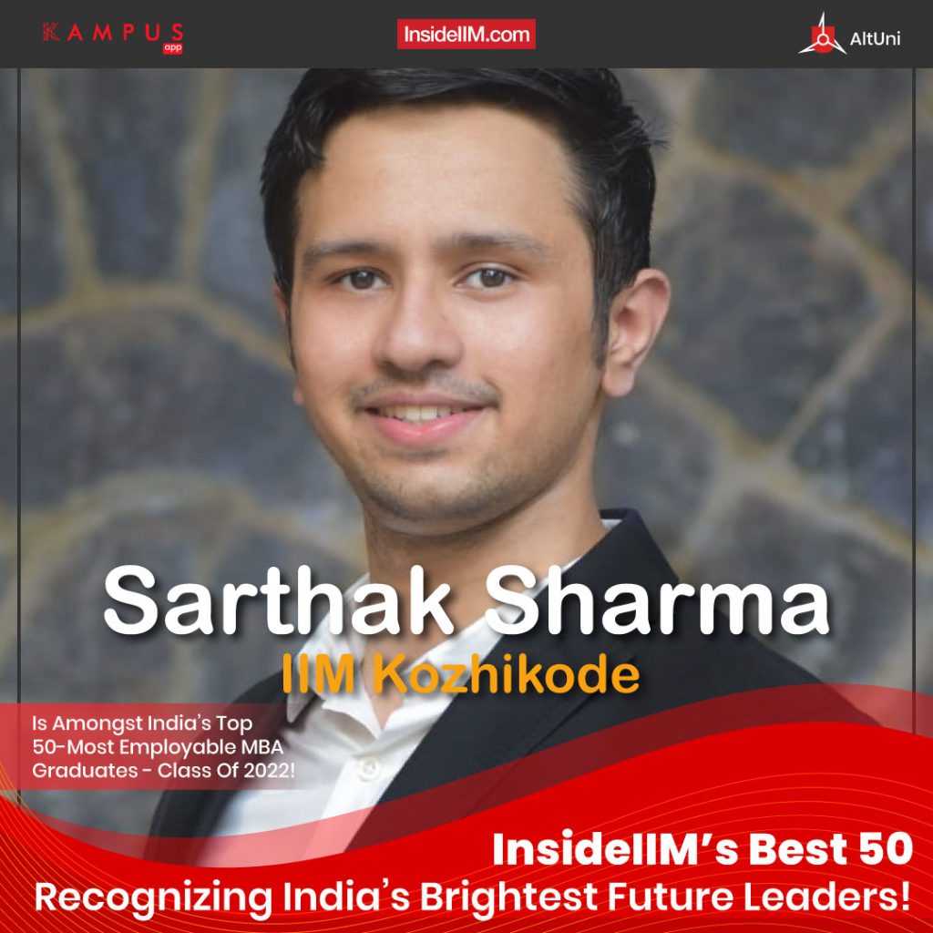 In our list of India's Best 50 - the 50 Most Employable Students from the Class of 2020-22, we feature MBA students who have walked that extra mile and done that little more to stand out! One of those featured in today's story, Sarthak Sharma, has shown an incredible amount of passion to achieve his true potential. Read on and find out his story!