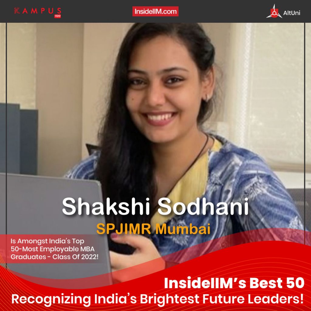 In our list of India's Best 50 - the 50 Most Employable Students from the Class of 2020-22, we feature MBA students who have walked that extra mile and done that little more to stand out. One of those featured in today's story, Shakshi Sodhani, has shown an incredible amount of passion to achieve her true potential. Read on and find out her story!