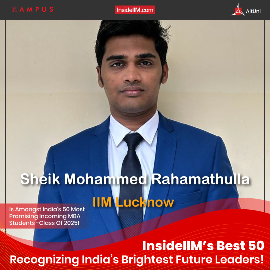 In our list of India's Best 50 - the 50 Most Promising Incoming MBA Students 2023, we feature MBA students who have walked that extra mile and done that little more to stand out! One of those featured in today's story, Sheik Mohammed Rahamathulla, has shown an incredible amount of passion to achieve his true potential.