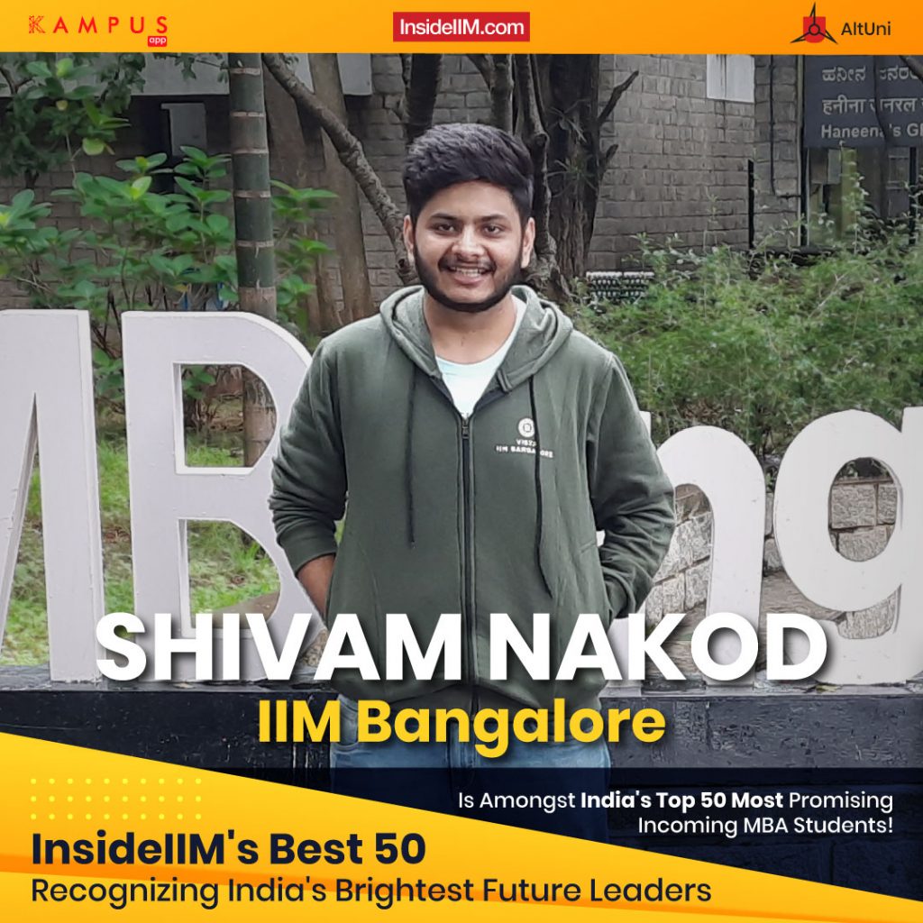 Shivam Nakod from the Indian Institute of Management, Bangalore is one of India's Most Promising Incoming MBA Students 2022!