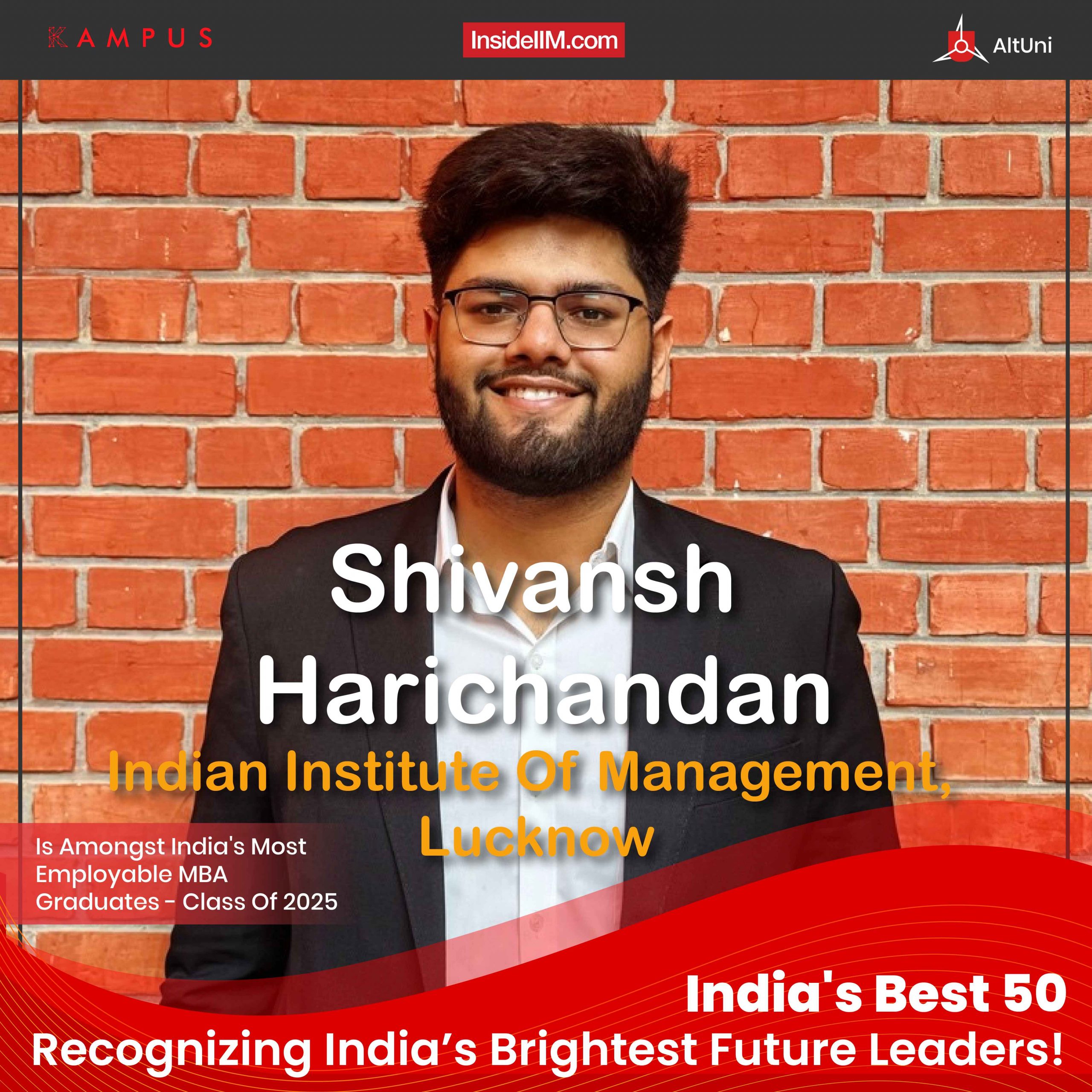 Shivansh Harichandan from the Indian Institute of Management, Lucknow, is recognized as one of the 50 most employable MBA graduates from the class of 2025. Scroll down to discover Shivansh’s journey, which exemplifies resilience, innovation, and leadership.