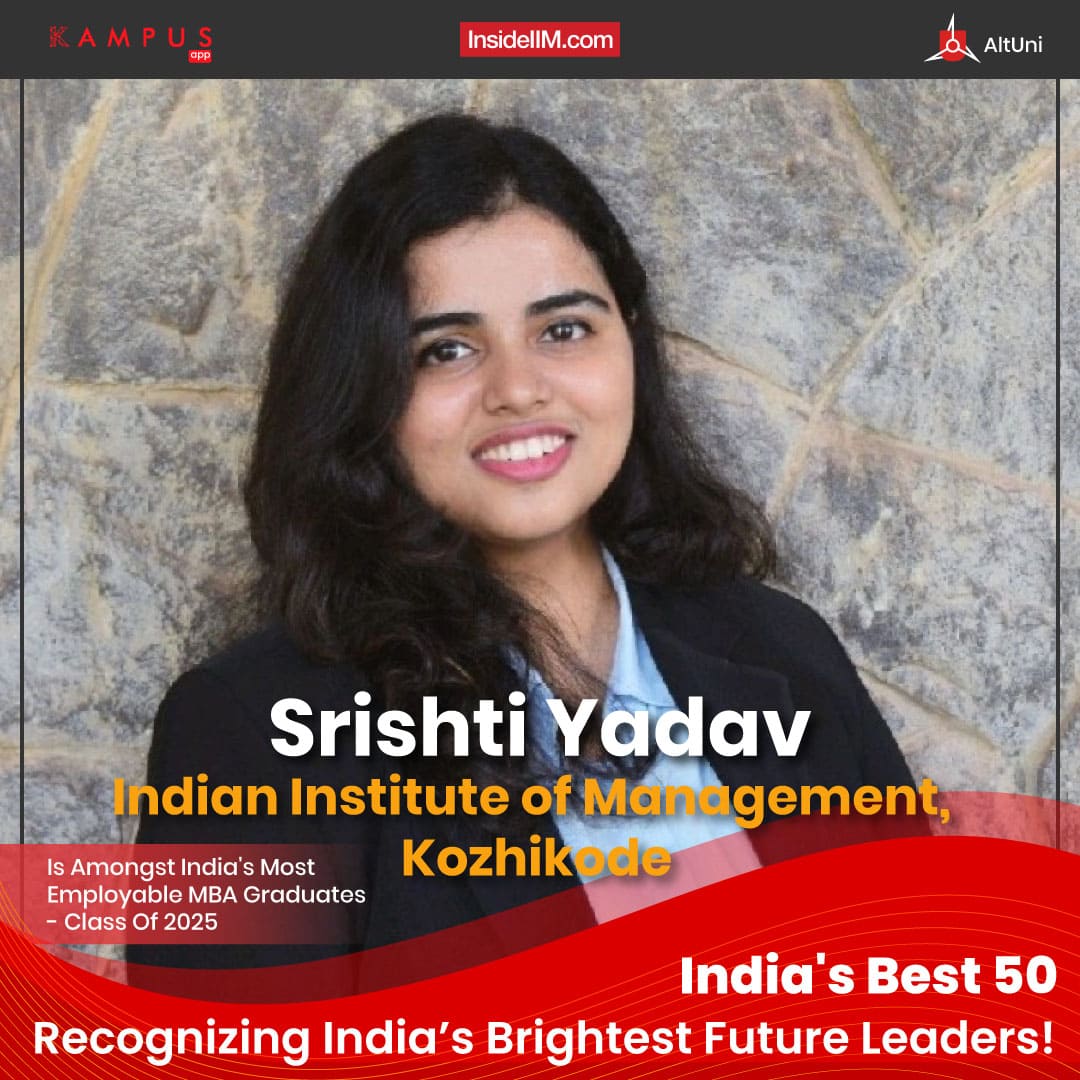 Srishti Yadav’s journey to IIM Kozhikode reflects a seamless blend of technical expertise, analytical rigor, and a deep commitment to continuous learning. Growing up in the dynamic environment of BARC, Mumbai, she was inspired by the transformative power of science and technology. This early exposure fueled her decision to pursue a B.Tech in Electronics Engineering from VJTI, Mumbai, where she honed her problem-solving and analytical abilities.
