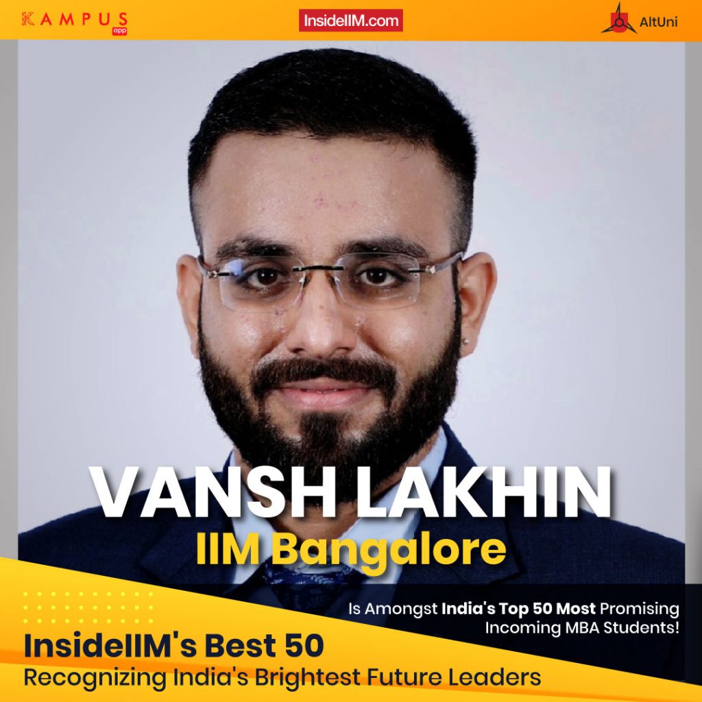 Vansh Lakhina from the Indian Institute of Management, Bangalore is one of India's Most Promising Incoming MBA Students 2022!
