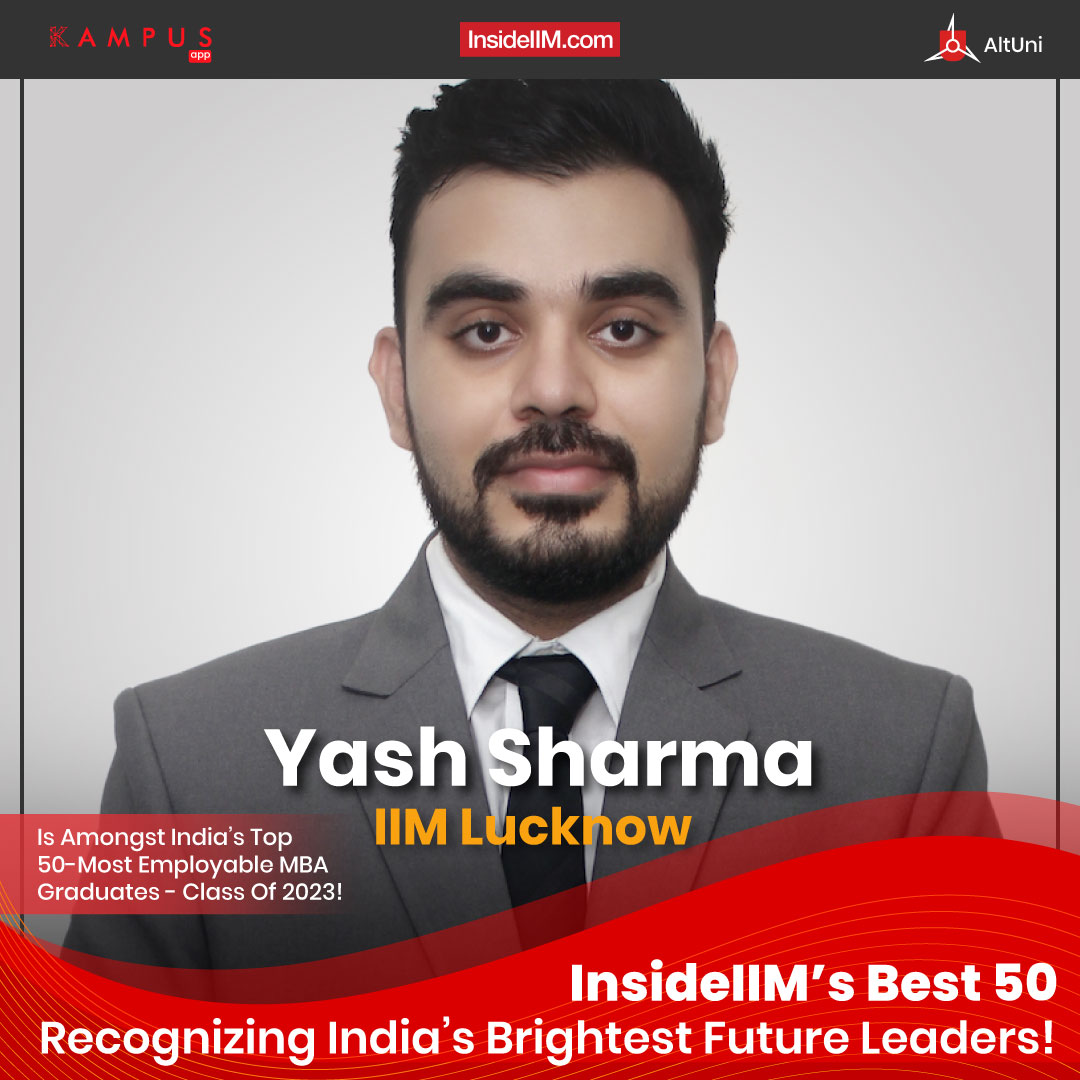 In our list of India's Best 50 - the 50 Most Employable Students from the Class of 2021-23, we feature MBA students who have walked that extra mile and done that little more to stand out! One of those featured in today's story, Yash Sharma, has shown an incredible amount of passion to achieve his true potential. Read on and find out his story!